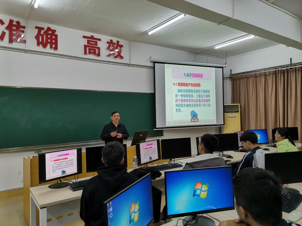 为进一步提升太阳集团网址8722师生的专业技术学术水平,12月11日19:30,我院教授级高级工程师劳锦洪教授在建工机电楼A207开展了“施工质量通病和防治”专题讲座,参加本次讲座的人员有BIM教研室副主任王小艳、工程管理教研室副主任蒋艳芳等教师及建筑工程技术、工程造价等专业30余名学生。