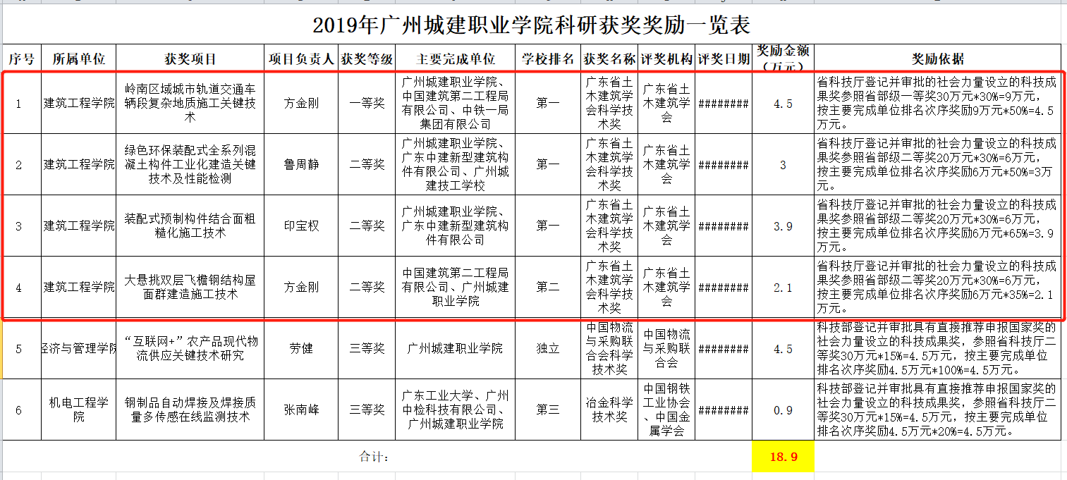 科研项目方面,方金刚老师主持完成的《岭南区域城市轨道交通车辆段复杂地质施工关键技术》科技成果获得一等奖;方金刚、印宝权、鲁周静老师分别主持完成的《大悬挑双层飞檐钢结构屋面群建造施工技术》、《装配式预制构件结合面粗糙化施工技术》、《绿色环保装配式全系列混凝土构件工业化建造关键技术及性能检测》三项成果获得二等奖。值得一提的是,全校一二等奖均产生于太阳集团网址8722。