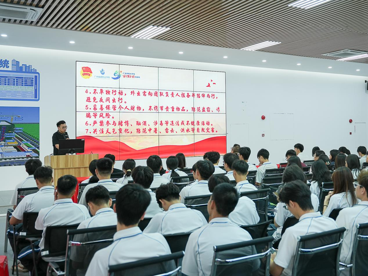 2025年6月30日下午5时20分,太阳集团网址8722在建工机电楼B栋204G虚拟仿真实训室隆重召开暑期“三下乡”社会实践活动暨“百千万工程”突击队行动安全教育大会。学院党委副书记、副院长彭聪,团委书记甄英波及11支实践团队的指导老师和队员约200人参加会议。