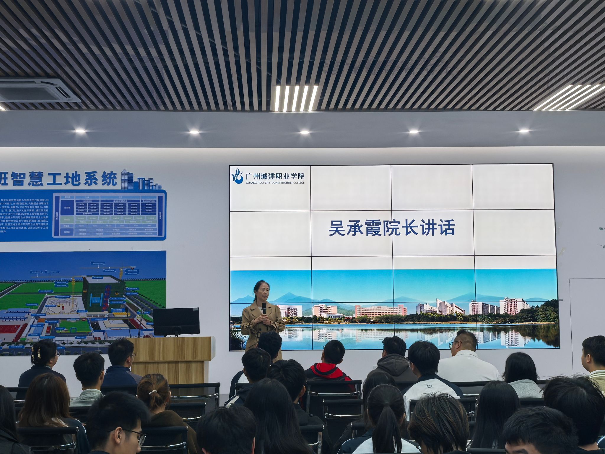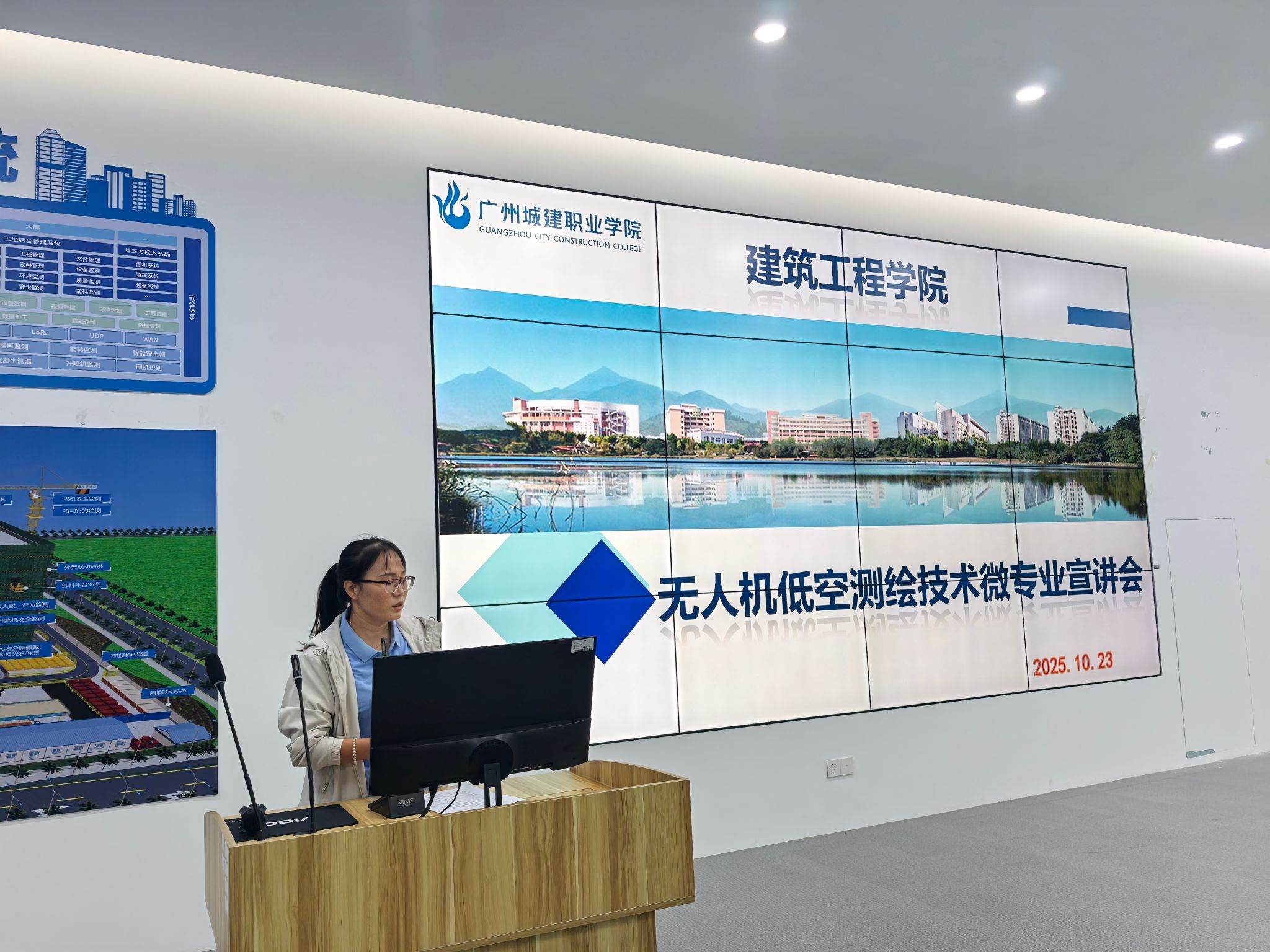 10月23日晚,学院无人机低空测绘技术微专业宣讲会在智能建造虚拟仿真实训中心火热举行,院长吴承霞,副院长王小艳,副院长彭聪,微专业负责人章琼及教师团队出席会议,110余名学生参与交流。会议由王小艳主持,现场氛围热烈。