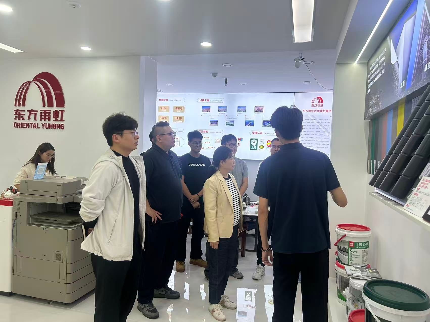 在翁庭峰的陪同下,吴承霞一行参观了东方雨虹防水消费者体验中心的材料展示区、工艺实训区与技术研发平台,详细了解企业在新型防水材料研发、标准化施工工艺及质量管理体系方面的创新成果与实际应用。随后,双方围绕“订单班”合作开展座谈,就课程共建、实训基地建设、师资共享及学生就业保障等关键环节进行深入交流。