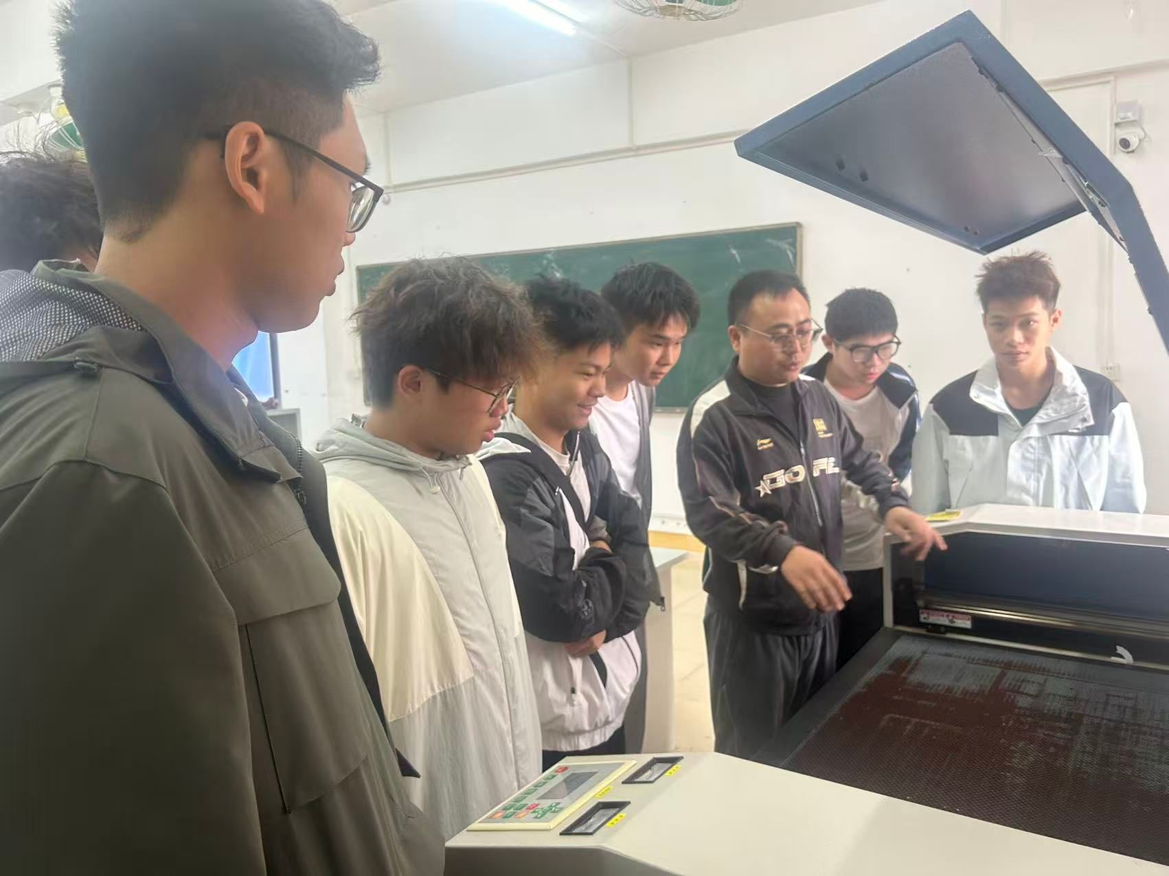 随后,谢奇辉将课堂移至设备现场,开展了沉浸式的现场教学。他为学生亲自演示了正确的操作流程和安全防护措施,过程中一边操作,一边细致讲解每一个安全步骤的要领和原理。这种“看得见、摸得着”的教学方式,极大地激发了新生的学习兴趣,使抽象的安全规程转化为具体的操作指南。