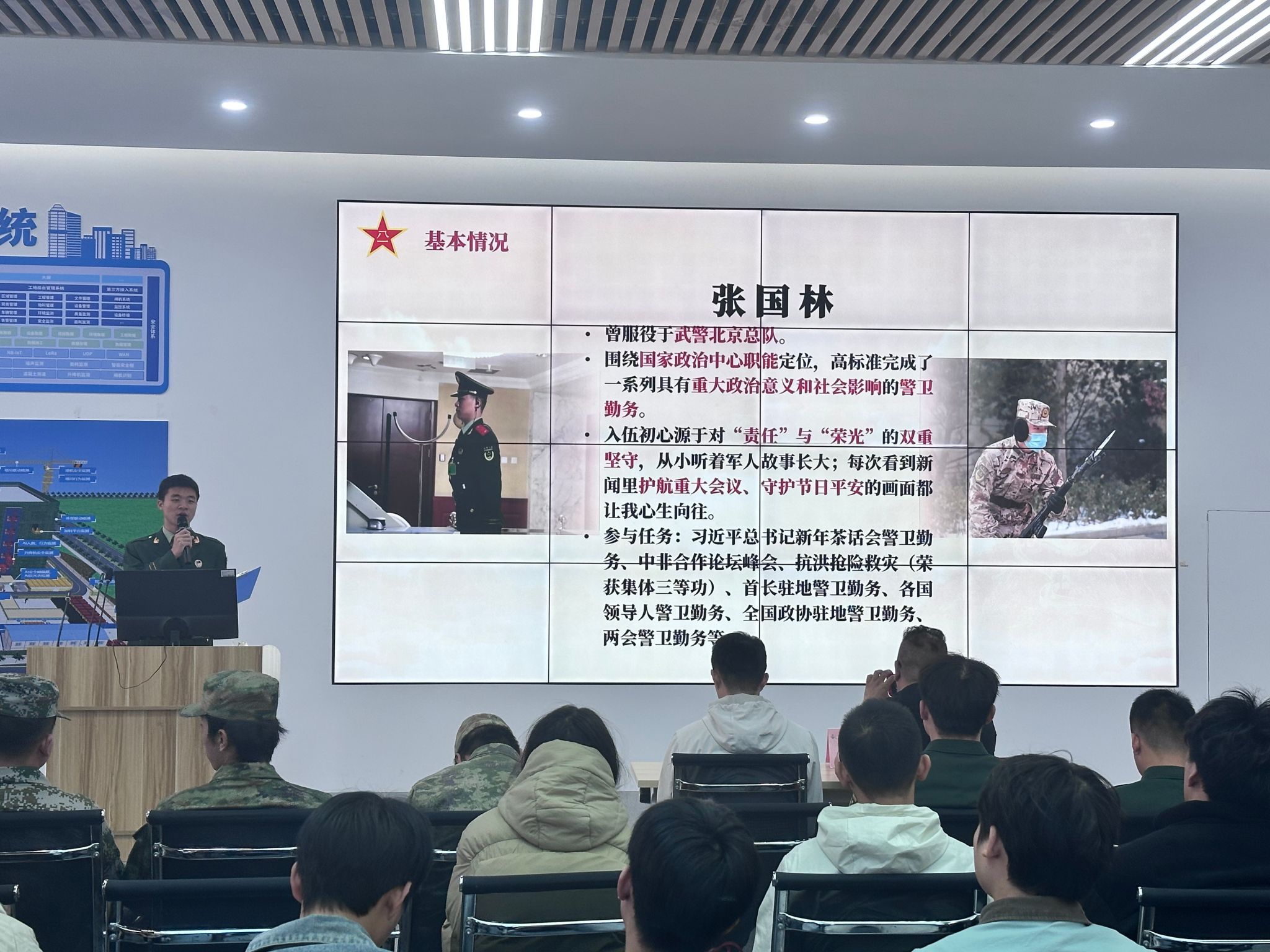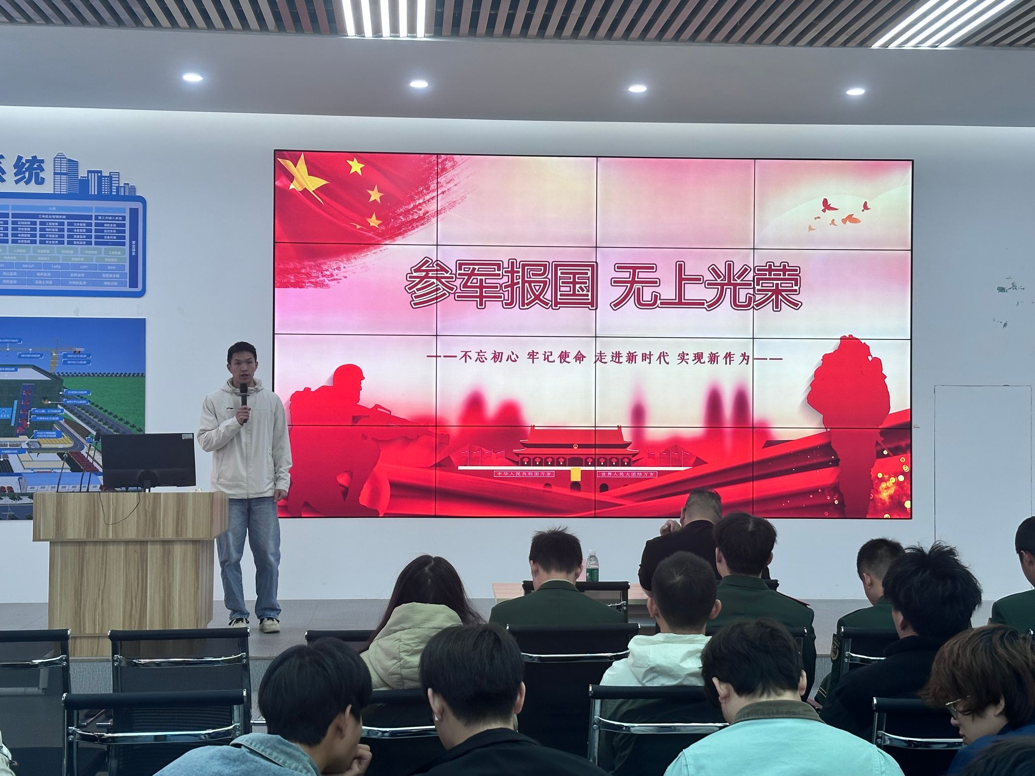 接着,退役学生代表张国林、李昊同学分享了在部队期间的成长收获与深刻感悟,明确表示返校后将继续保持纪律意识和拼搏精神,专注于提升自身学业水平与综合素质,在同学中争当模范、做好表率,也倡议同学们携笔从戎,将青春奉献至祖国所需之处。以积极心态应对学习与生活中的挑战,科学规划大学生活。随后,胡国兴专员围绕参军意义、应征入伍条件与流程、参军优待政策等方面展开详细宣讲,并详细解答同学们的疑问,鼓励大学生积极响应祖国号召,主动接受祖国挑选,为实现强国梦、强军梦贡献青春力量。活动最后,学院为退伍复学学生及参训学生教官发放纪念品。