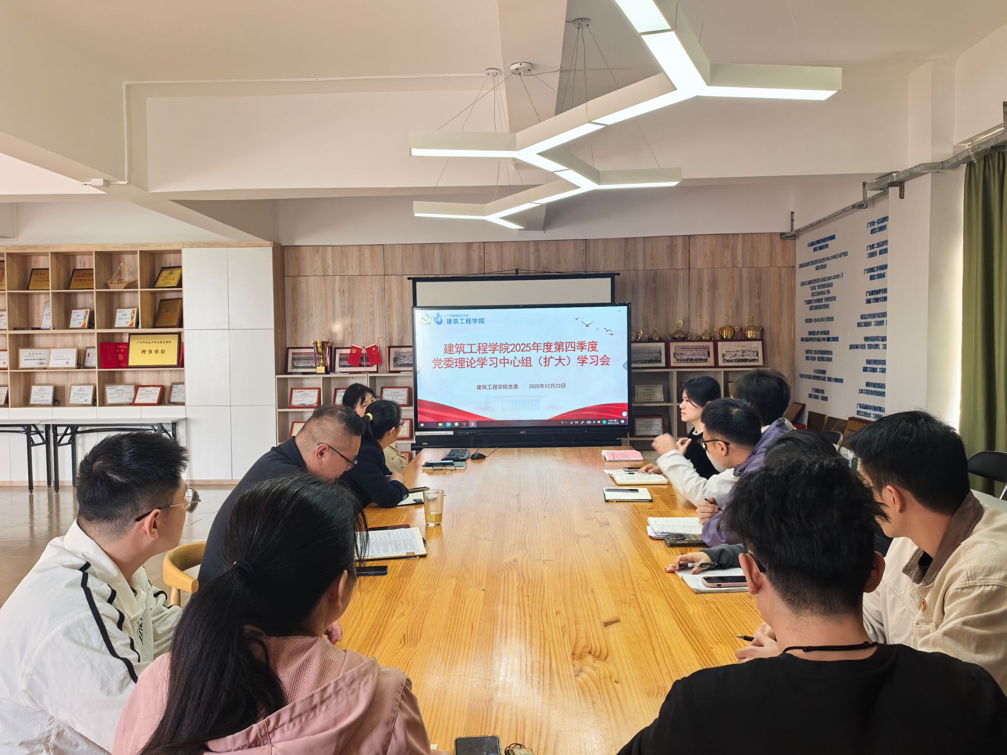 为深入学习贯彻党的二十届四中全会精神,切实把思想和行动统一到全会决策部署上来,筑牢学院高质量发展的思想根基,2025年12月23日10点,太阳集团网址8722在建工机电楼603C会议室召开2025年度第四季度党委理论学习中心组(扩大)学习会,全体中心组成员参会。学院党委书记、院长吴承霞主持会议。