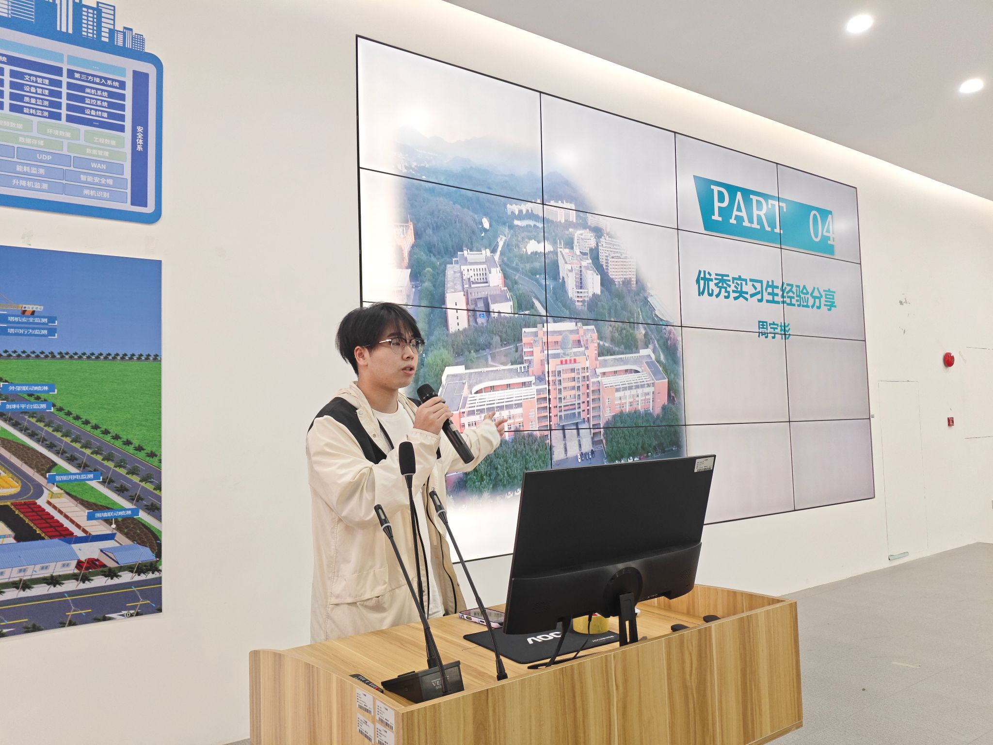 在经验分享环节,我院优秀实习生周宇彬结合自身的实习经历,讲述从学生到职场新人的转变过程。她提到在公司导师的指导和团队的帮助下,自己逐步适应工作节奏,提升了专业技能和职业认知。她还鼓励同学们要积极主动地学习和实践,勇于挑战自我,在工作中不断积累经验。