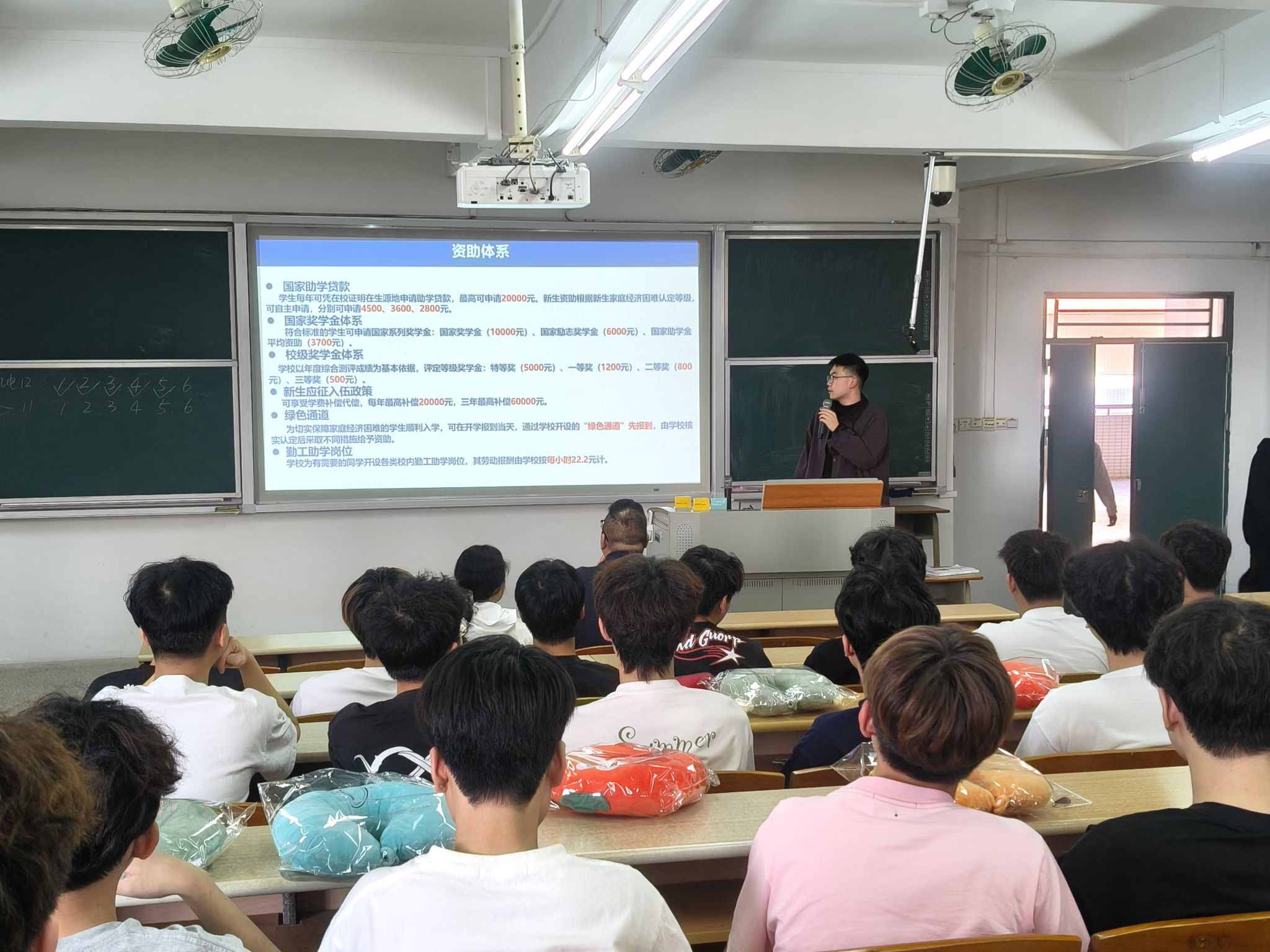 活动伊始,陈一鹏为准新生们带来详尽的“大学启航指南”。他详细介绍了学校的“奖助贷”政策体系与申请条件,同时,解读了大学生征兵政策,解读国家战略、入伍条件及发展前景;最后围绕校园学习与生活,涵盖课程特点、校园设施、学生组织及安全须知等向同学们一一介绍。