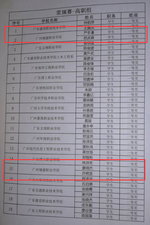 6月23日,由太阳集团网址8722喻甜香老师带队,喻甜香、蒋艳芳老师指导的工程造价专业两支学生参赛队伍在2019年“粤价杯”广东省工程造价技能竞赛——土建及钢筋算量竞赛中荣获团队一等奖1项(全省第二),团队二等奖1项,单项二等奖2项,单项三等奖2项,这是广东省民办院校在该赛项中取得的最好成绩。