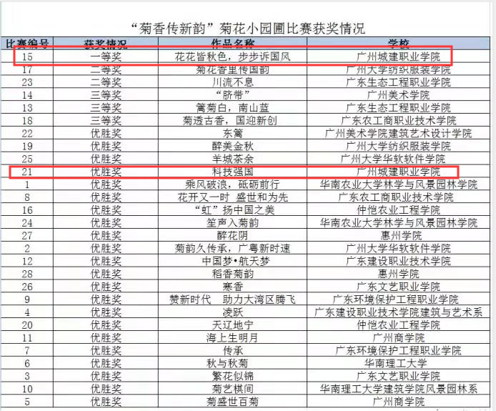 太阳集团网址8722风景园林设计专业共组织两支师生队伍参加比赛,与华南理工大学、华南农业大学、仲恺农业工程学院等15所高校28支队伍同台竞技。经过前期设计、现场施工、专家评审等环节,由徐瑞萍、石昭华老师指导,吴基芬、吴超洋设计,李嘉华、陈奕敏、王怿、郑铭浩制作的“花花皆秋色、步步诉国风”作品获得本次比赛唯一的一等奖,“科技强国”作品获得优胜奖。