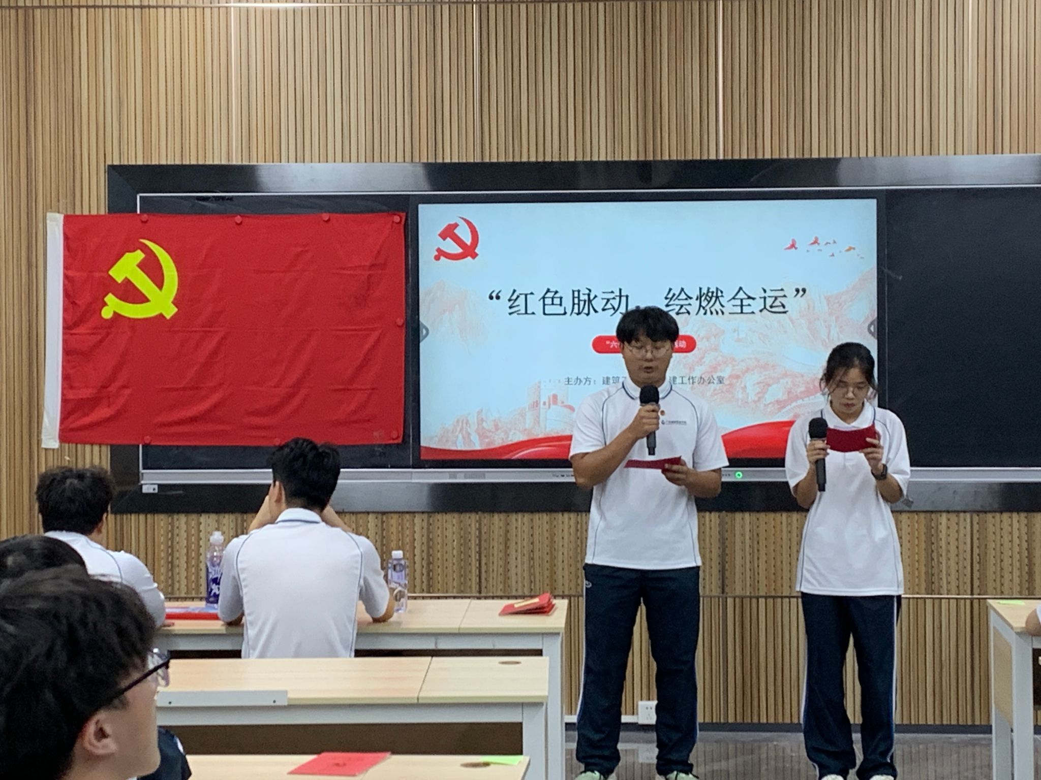 为创新党性教育形式,推动全运精神与红色基因深度融合,2025年11月10日19:30,太阳集团网址8722党委在建工机电楼B栋204D课室举办以“红色脉动·绘燃全运”为主题的“六个一”工程系列活动,学院学生党员以及入党积极分子参加本次活动。学院党建工作办公室周家裕和郑晓英两位同学担任主持。