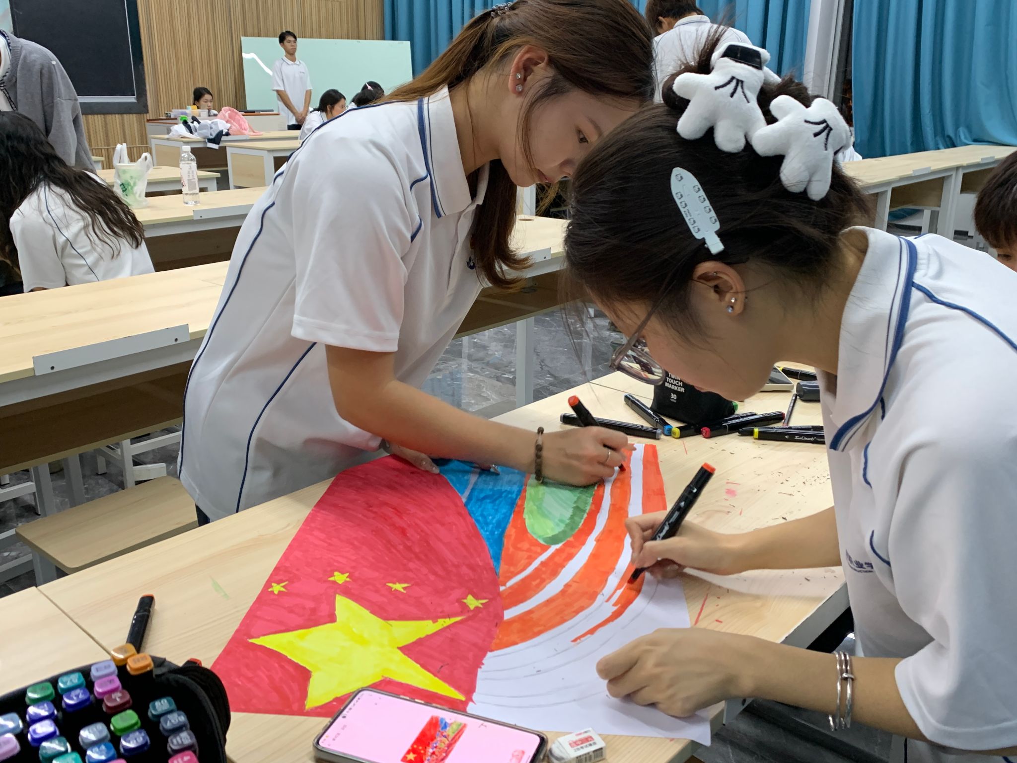 介绍结束后,活动进入绘画创作环节。全体参与人员将对广州全运会的体育激情与红色精神的时代内涵融入画作,运用线条展现体育拼搏与革命斗争的精神共鸣。正如革命先辈不畏艰难、奋勇前进,全运赛场上的拼搏正是红色精神在新时代的生动写照。随后,各小组派出代表依次上台讲解创作理念。他们表示这次活动直观了解广州全运会的火炬传递,不仅是体育精神的传承,更是红色基因的延续。