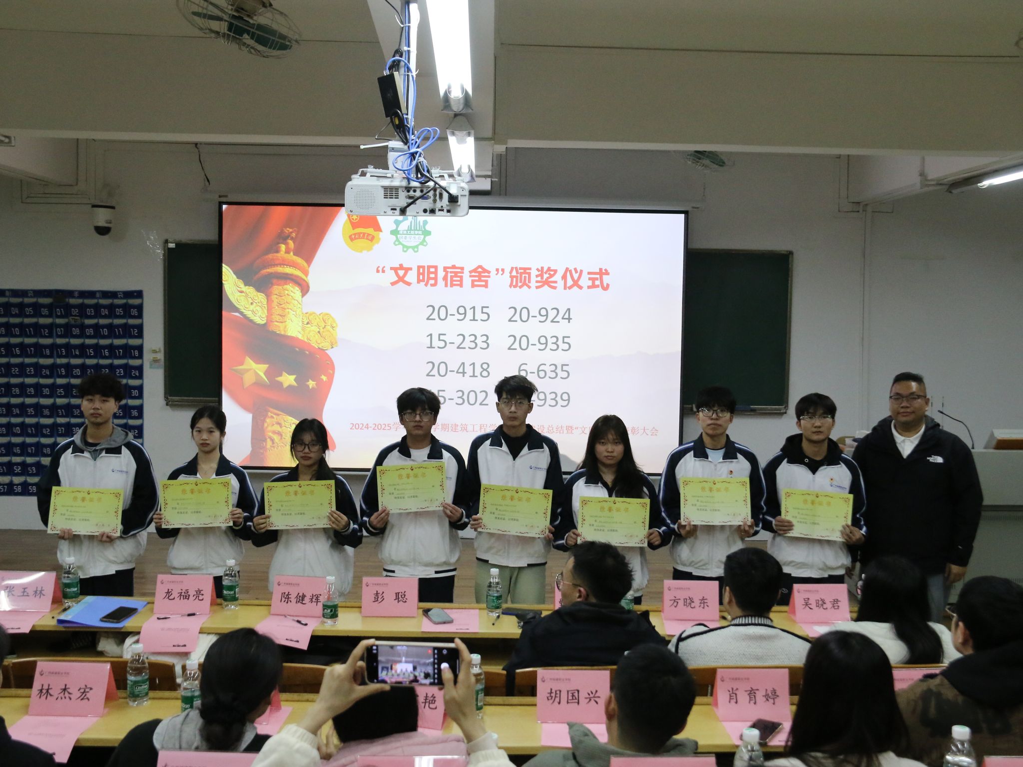 彭聪副院长给获奖宿舍颁奖