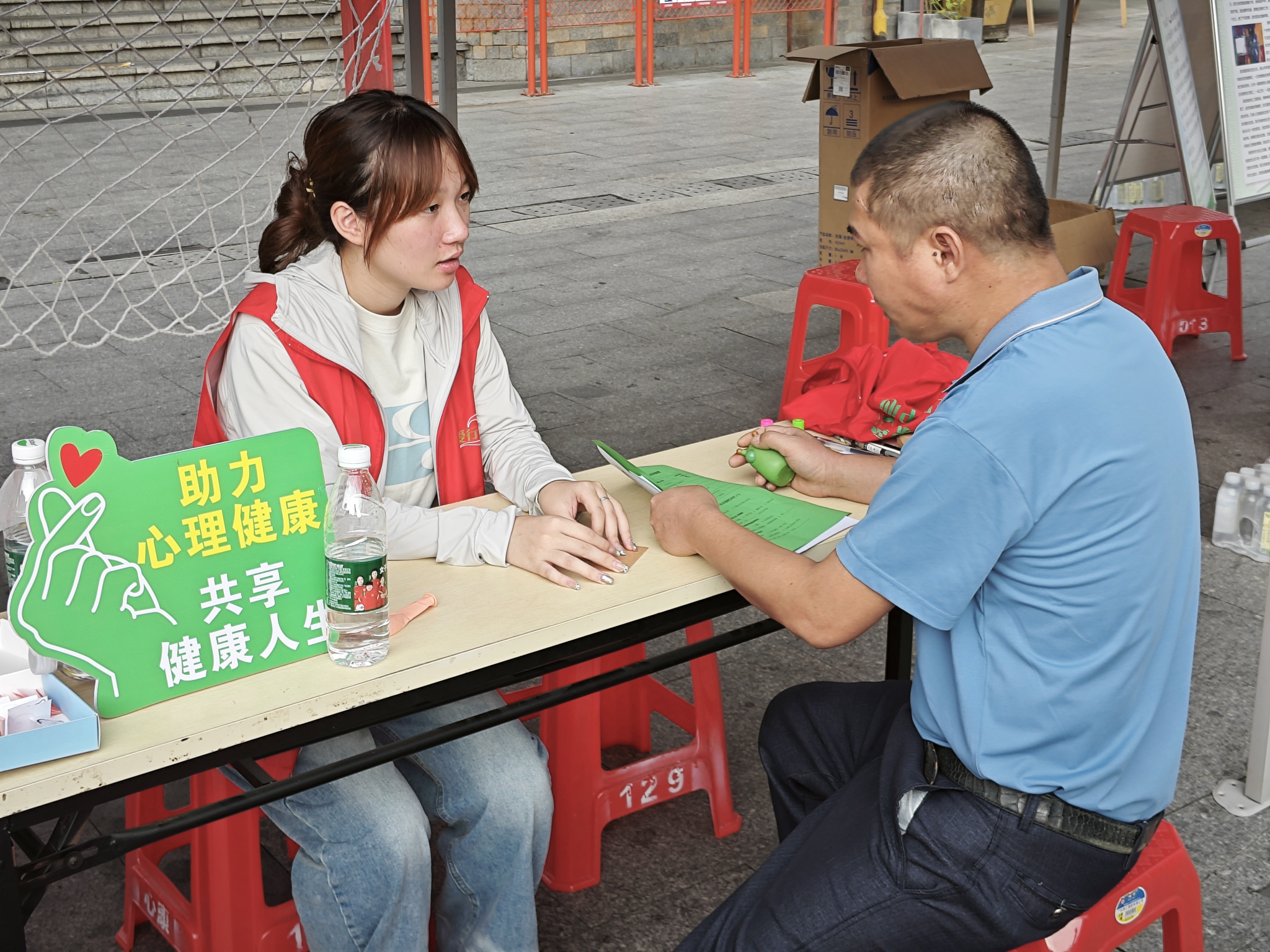 活动当天,学生志愿者们身着志愿者服,早早地来到了活动现场。他们精神饱满,面带微笑,迅速投入到各项准备工作中,精心设置包括心理健康咨询、精神障碍知识普及、趣味游戏互动等多个展位,为社区居民提供了一站式、全方位的服务体验。在心理健康咨询摊位前,工作人员们耐心倾听每一位来访者的心声,用他们的专业知识和温暖的话语,为现场人员带来心灵的慰藉和疏导。他们不仅解答了关于精神卫生的疑问,还传授了简单的心理调适技巧,帮助大家更好地应对生活中的压力和挑战。此外,志愿者们还积极参与到互动中,营造了轻松愉快的氛围,消除了社区居民对精神障碍患者的偏见和误解。建工学子们的身影穿梭在人群中,成为活动现场一道亮丽的风景线。