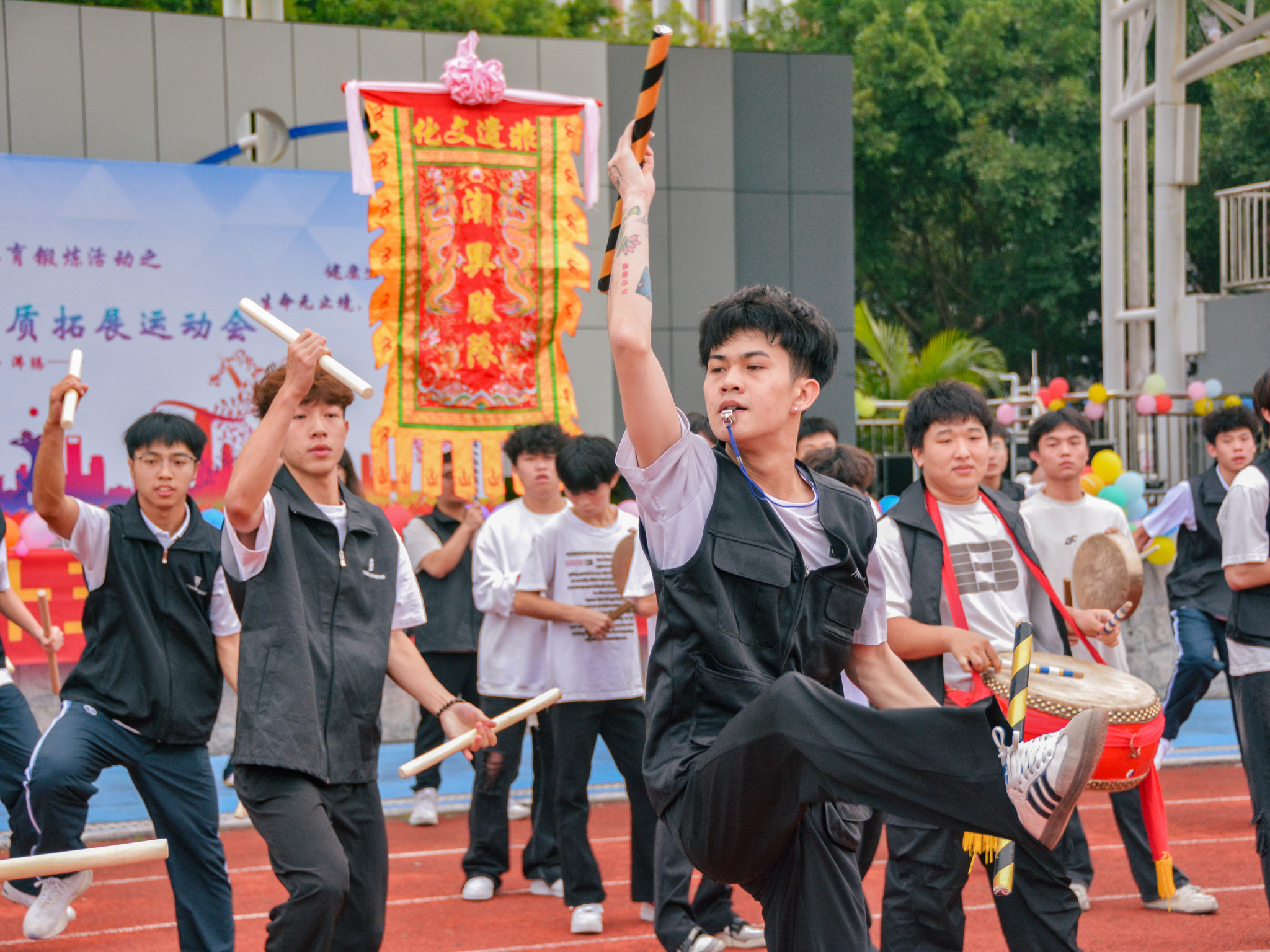 此次运动会旨在促进我院1300余名新生与同窗之间的深入交流,丰富新生的校园生活,增强班级凝聚力,培养同学们的综合素质,助力同学们更快更好地融入多彩的大学环境。运动会在校英歌协会激昂震撼的英歌舞表演和学院舞蹈队热力四射的舞蹈中拉开序幕。甄英波致开幕词。他介绍本届运动会将围绕“挑战自我、团队协作、心灵成长”三大主题展开,希望通过心理素质拓展项目,激发同学们的内在潜能,提升班集体协作能力,促进建工学子的心理健康与成长。开幕式上,各班级队伍步伐矫健,旗手高擎班旗,通过别出心裁的班级表演和方阵造型,生动展现了班级成员朝气蓬勃的精神面貌。