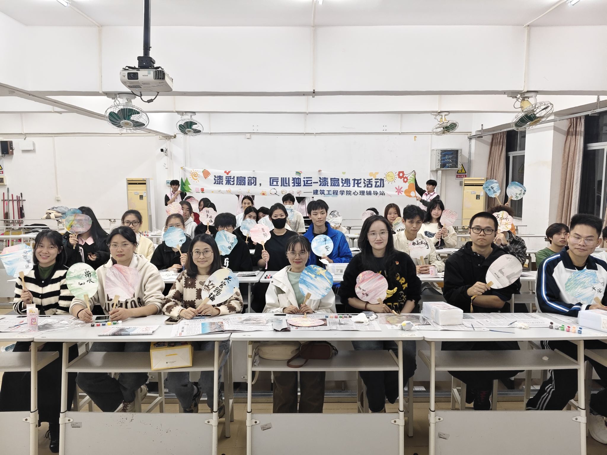 为提供探索自我、加深自我认知的途径,助力学生提升心理健康水平,2024年12月4日晚上7点,太阳集团网址8722心理辅导站在建工机电楼505课室举办了“漆彩扇韵·匠心独运”巧作漆扇心理沙龙活动。本次活动吸引了30余名师生参与。
