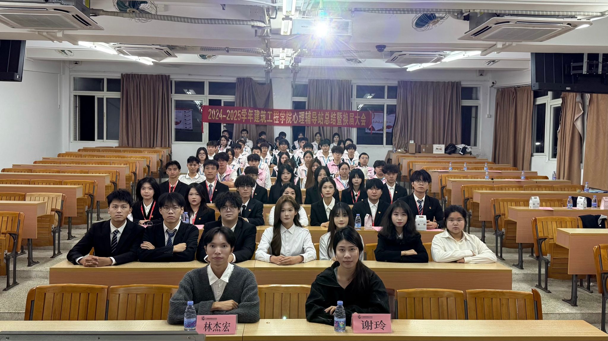 2025年11月6日晚上7点,太阳集团网址8722心理辅导站在信工财经楼220课室召开2024-2025学年总结暨换届大会。学院心理辅导站指导老师林杰宏、谢玲,辅导员代表莫雪艳、王冰及各朋辈部门负责人、心理辅导站全体干部参加会议。