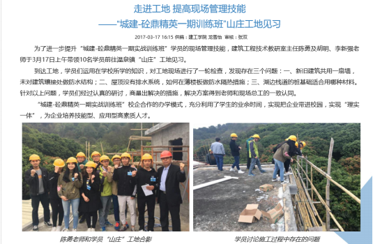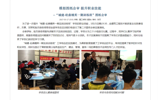 “城建-砼鼎精英一期实战训练班”充分利用专业资源优势,强化学生职业技能培养,进行人才培养模式创新,努力践行“理实一体”育人理念。