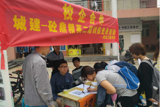 在精英班的理念得到学院认可后。在学工办的协助下,由砼鼎城建-砼鼎建筑工人职业化服务中心开始精英班一期选录学员工作。通过学校摆摊等方式进行宣传,吸引广大学子前来报名,通过笔试、面试层层筛选,最终选出优秀精英班学员。