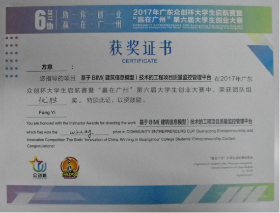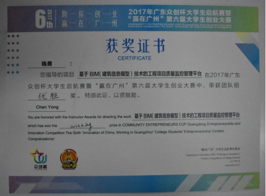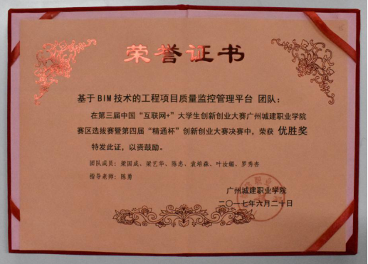 在2017年校内“BIM大赛”比赛中,荣获三等奖;