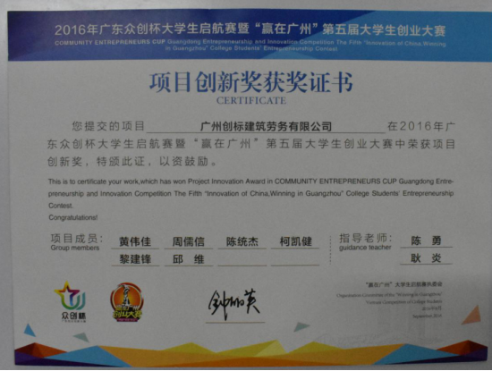 砼鼎精英班在老师和学员的共同努力下,在广东众创杯大学生起航赛暨“赢在广州”大学生创业大赛、“互联网+”大学生创新创业大赛、全国职业院校技能大赛高职组广东省选拔赛测绘等比赛中取得优秀成绩。以下为获奖证书: