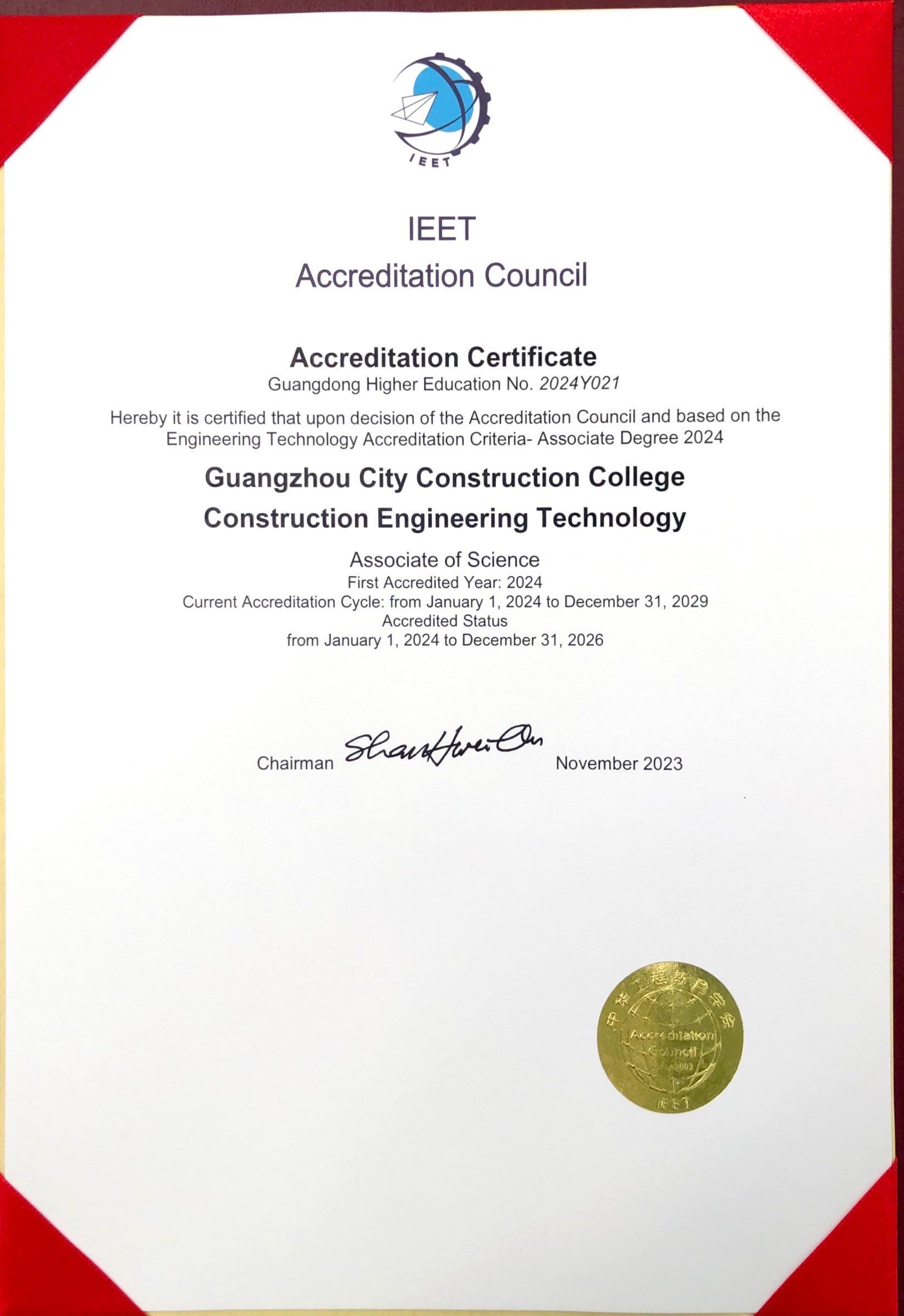 我院建筑工程技术专业自2022年11月正式启动IEET工程及科技教育认证工作,学校与学院以专业认证为重要抓手,按照八个“认证规范”的具体要求开展工作,多次组织专业内外咨询委员会进行研讨论证,及时协调解决专业认证过程中的需求和难题,不断深化专业内涵建设,强化人才培养标准意识。2023年11月,本专业顺利通过IEET专业认证。认证的通过表明建筑工程技术专业人才培养质量达到IEET认证规范要求,是我校第二个通过国际工程教育认证的专业,标志着建筑工程技术专业品牌质量建设再上新台阶,建筑工程技术专业将持续努力为粤港澳大湾区培养更多优秀的工程技术人才。