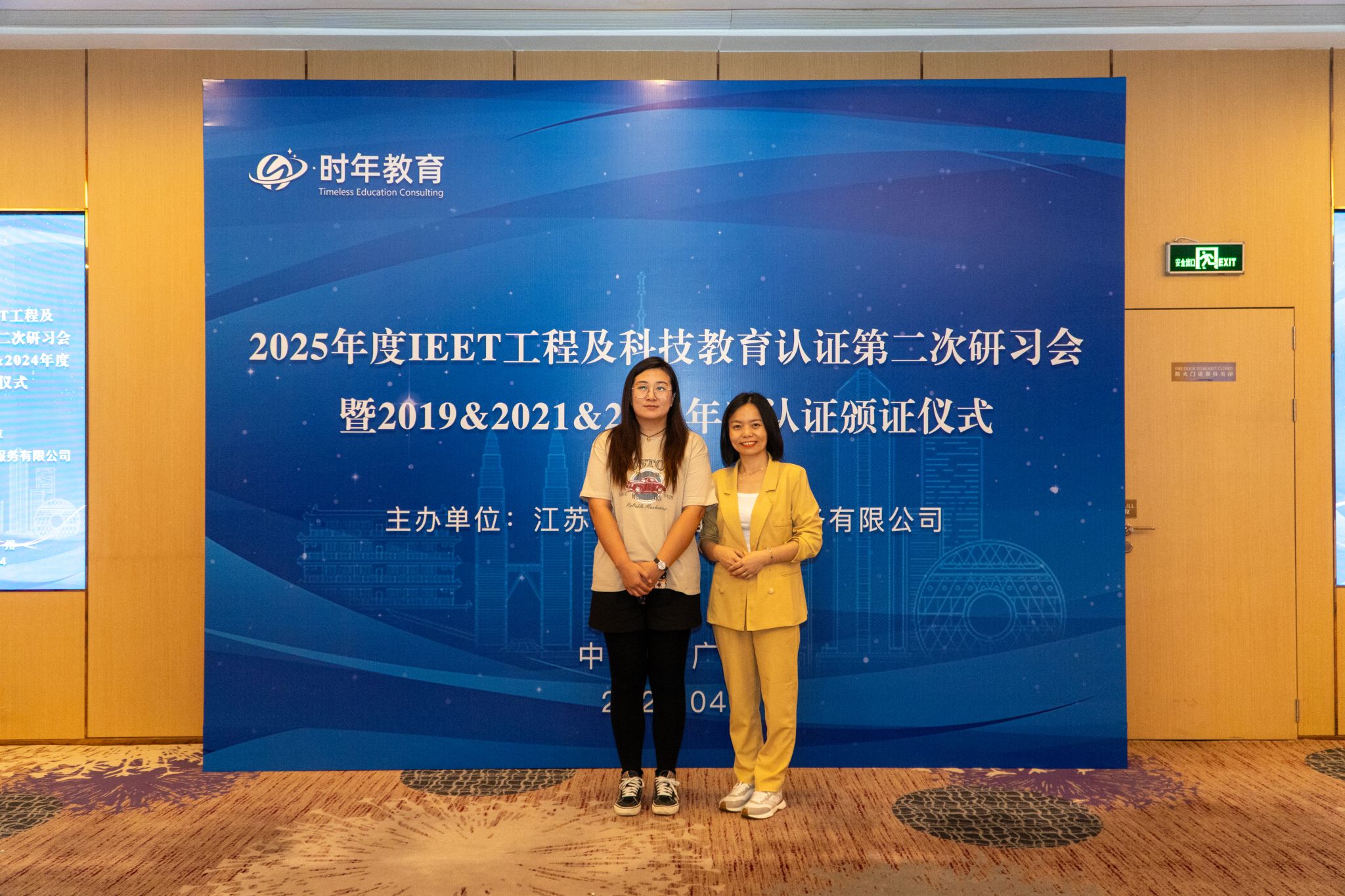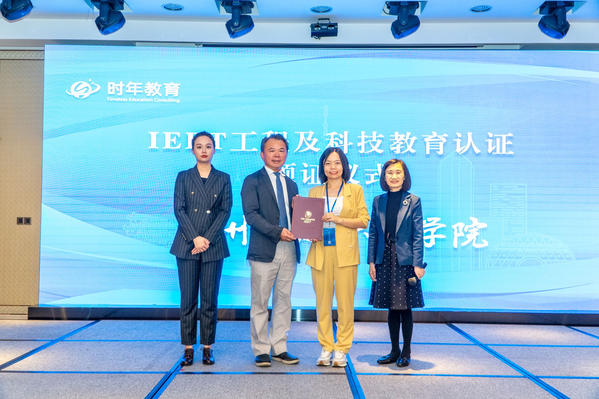 4月11日下午,太阳集团网址8722教学副院长高华、建筑工程技术专业教研室主任李晓琳受邀参加IEET工程及科技教育认证颁证仪式及交流学习。此次颁证仪式由江苏时年教育咨询服务有限公司组织,来自2019-2024三个年度认证专业院校16所,33个专业,80余人参与,高华副院长代表建筑工程技术专业IEET认证团队领取了认证证书。