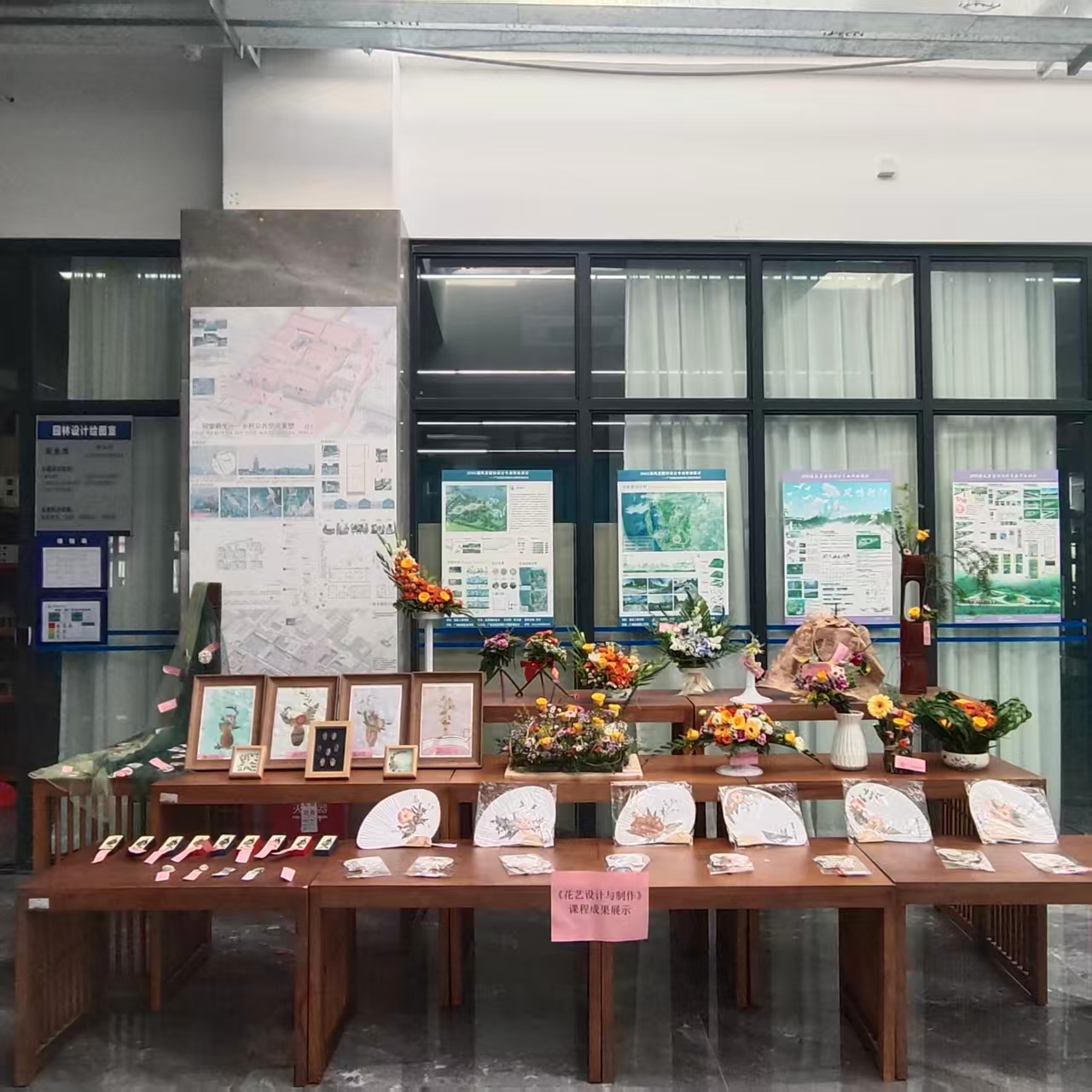 为生动呈现课程教学成果与美育教育实效,全面提升学子艺术素养与实践创新能力,11月17日,建工机电楼B栋204大厅举办《花艺设计与制作》课程成果展。本次活动以“自然与艺术的联结”为主题,集结学院园林专业43名学生的原创花艺作品,通过理论与实践结合的教学模式,让学生系统掌握花艺设计的核心技能,感受自然美学与人文艺术的融合魅力。